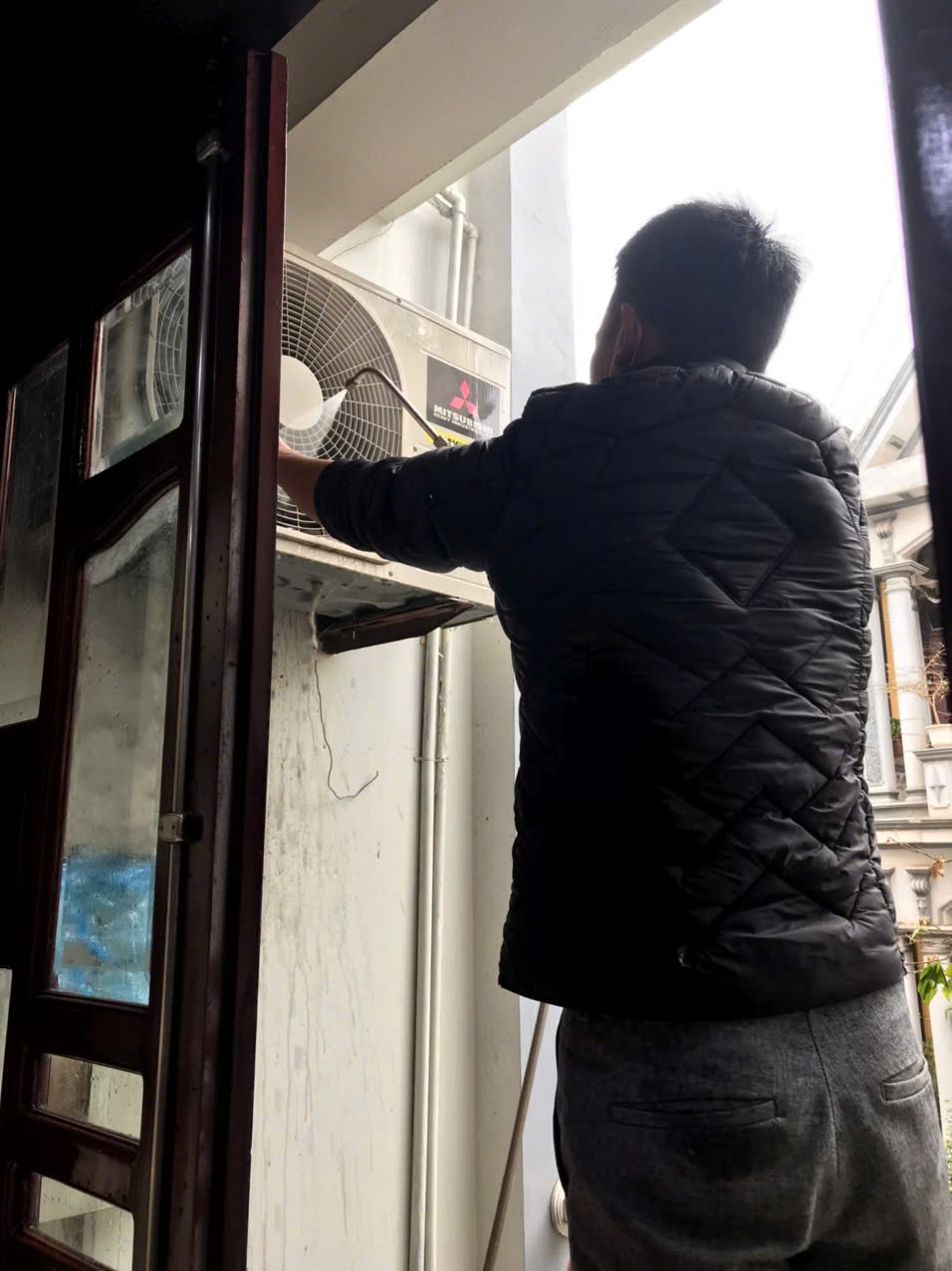 Bảo dưỡng điều hòa cho khách cho dù có cao, có nguy hiểm thì thợ nhà em vẫn hoàn thành nhiệm vụ.